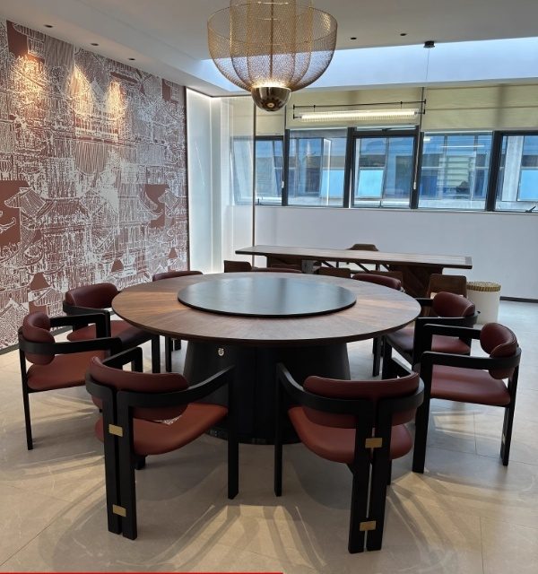 20人电动餐桌高端大圆桌不仅提供了足够的就餐空间,还为餐饮包间增添了高级感和质感。以下是关于20人圆桌的具体尺寸和餐厅包房面积要求: